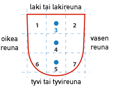 Oikea ja vasen määritetään ”kilven takaa”,