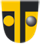 ”Punaisessa kentässä [nykysanonta: punaisella kilvellä] kruunupäinen leijona, joka pitää oikean etujalan sijalla olevassa haarniskoidussa kädessä iskuun kohotettua miekkaa ja polkee takajaloillaan sapelia, leijona kruunuineen ja varuksineen, aseiden kahvat ja käsivarsihaarniskan nivelet kultaa sekä aseiden terät ja käsivarsihaarniska hopeaa; kenttään [nyk.: kilvelle] sirotettu yhdeksän hopearuusua.”
